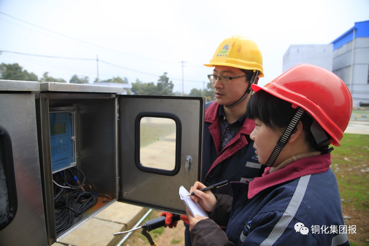 / 近日,新橋礦業(yè)公司技改擴(kuò)建后的污水處理新系統(tǒng)明渠流量計(jì)柜前,兩名員工正在觀察記錄外排水流量。
