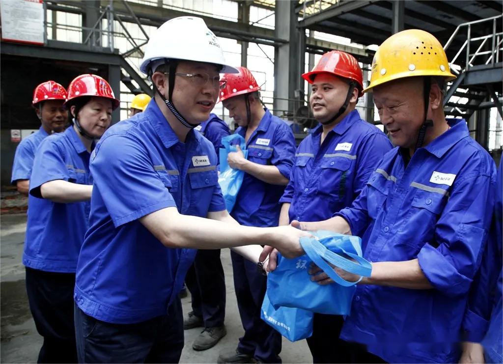 在磨浮車間,吳亞和陳彬?qū)⒁环莘荨扒鍥觥倍Y包送到員工手中,感謝大家戰(zhàn)高溫,守崗位,為公司上半年生產(chǎn)經(jīng)營(yíng)做出的突出貢獻(xiàn),同時(shí)叮囑大家注意休息、勞逸結(jié)合。